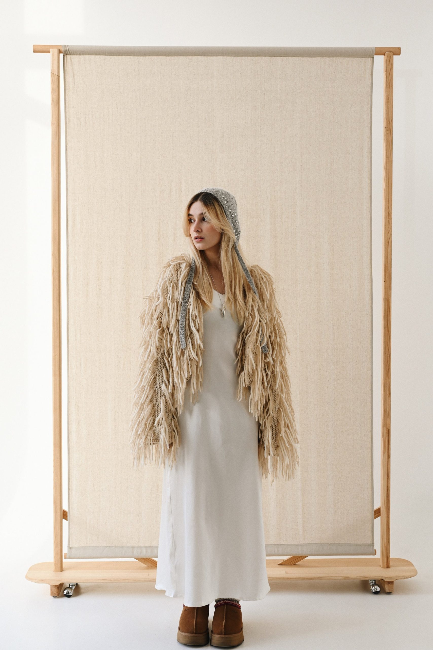 Hand Knitted Wool Bonnet: Sequined Ear Flap Hat